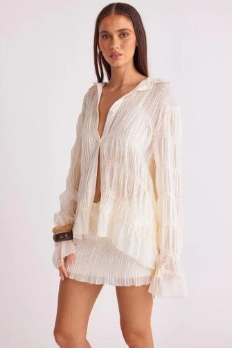 The La Louisiane Shirt is made from a lightweight crinkle fabric. It has a collared neckline with long sleeves and a textured finish.