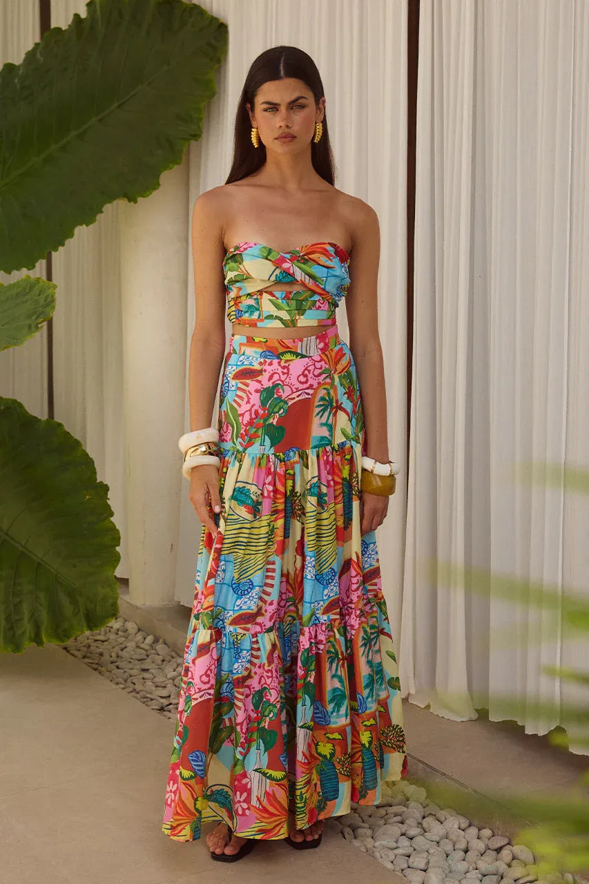 A feminine blush tone and seashell hardware, our Rikki Maxi Skirt is fun and light, pair with our Rikki Top for the complete look.