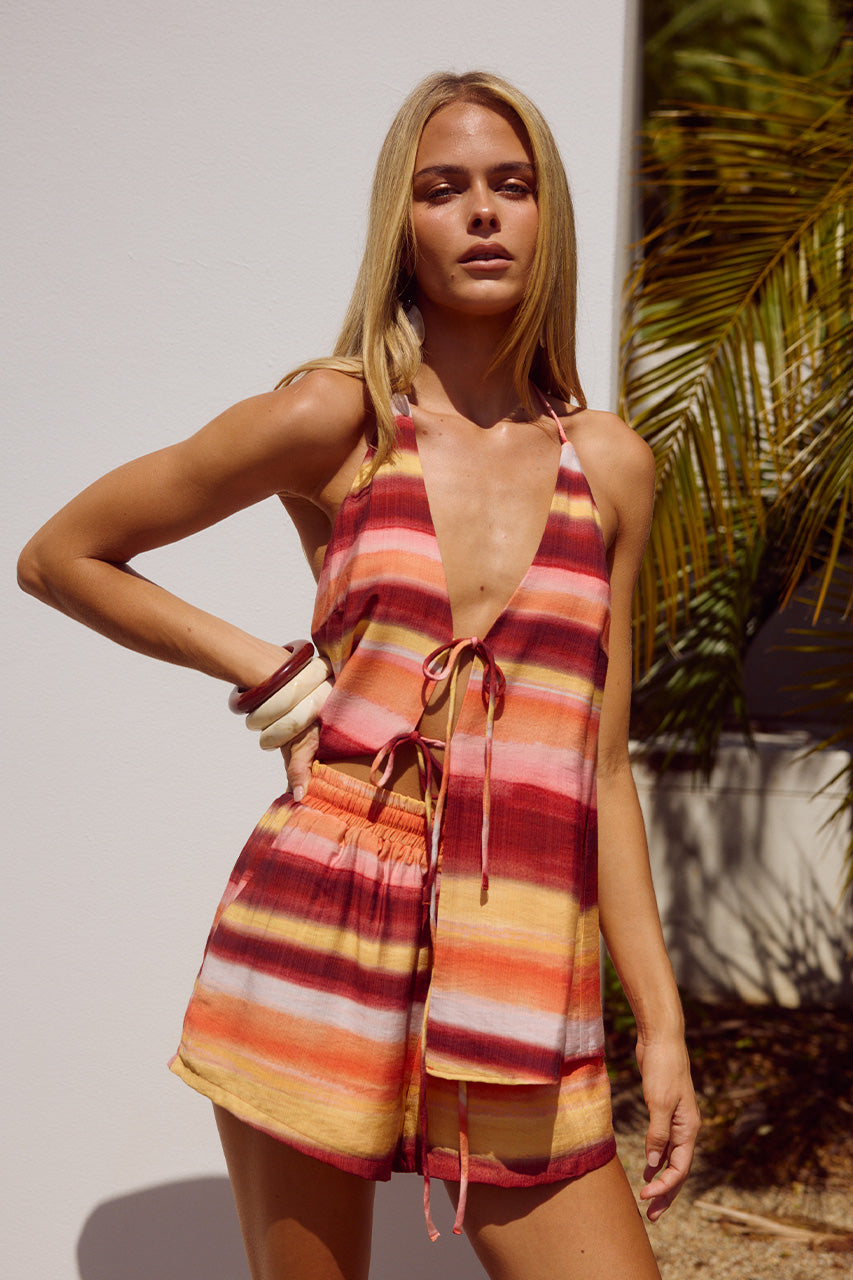 For a fresh take on a vest our Octavia Top is loose fitting with tie up details at the front and back, match this with our Octavia Short for the complete look.