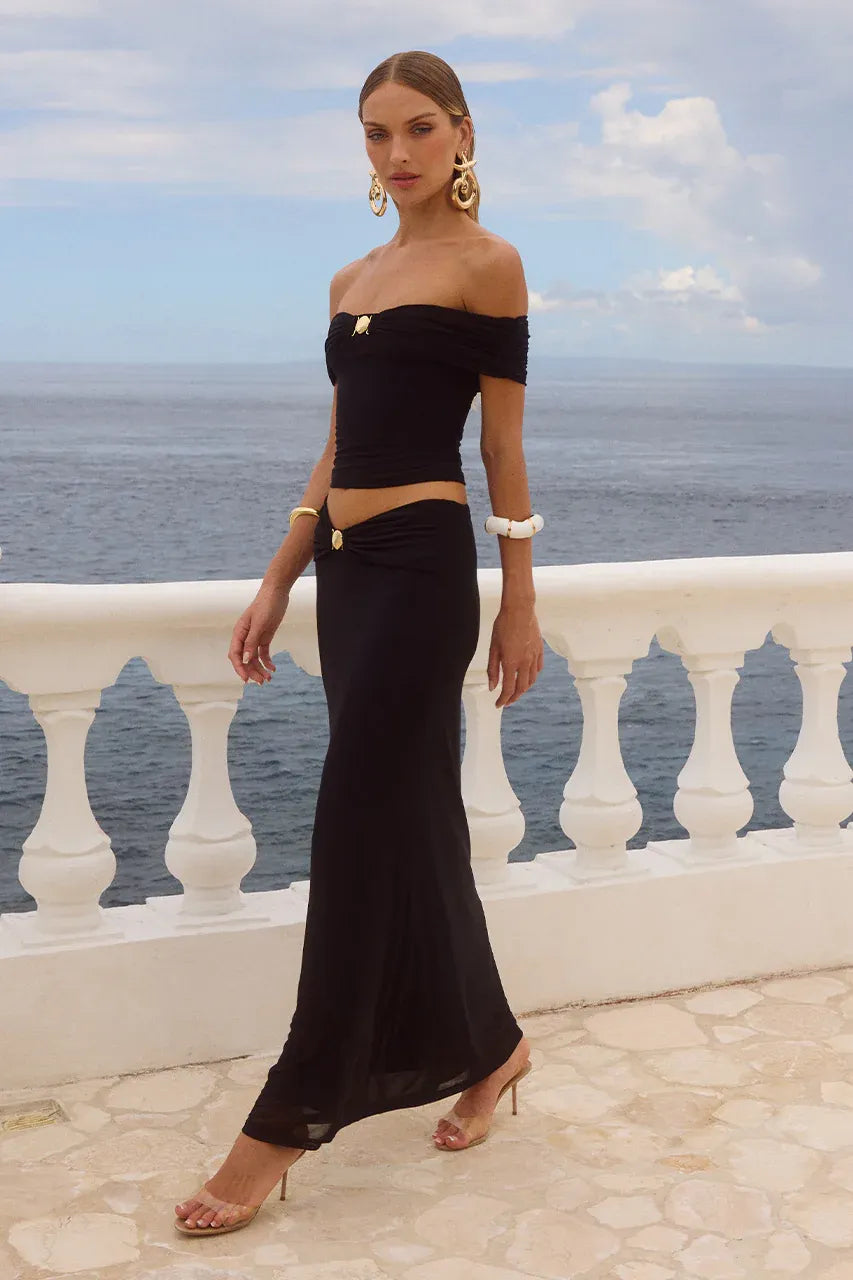 A feminine blush tone and seashell hardware, our Rikki Maxi Skirt is fun and light, pair with our Rikki Top for the complete look.